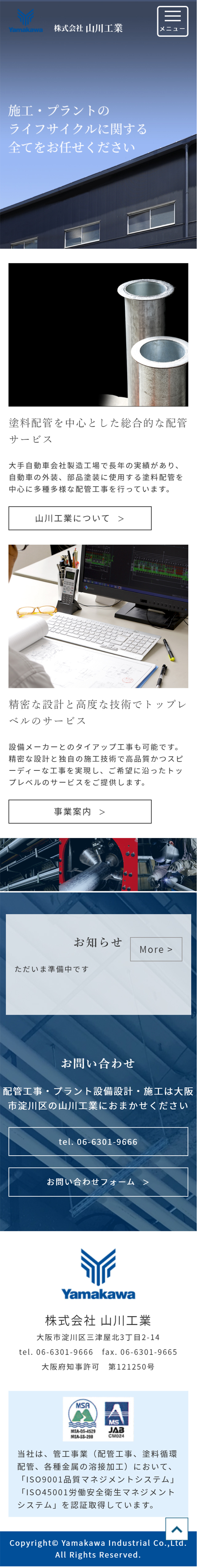 京都のホームページ制作なら有限会社ホットファーム MENU サービス内容 web制作 更新・保守管理 SEO対策 下請け・外注 制作の流れ 制作実績 会社案内 採用情報 075-924-0666 お問い合わせ お知らせ サービス内容 web制作 更新・保守管理 SEO対策 下請け・外注 制作の流れ 制作実績 会社案内 採用情報 お問い合わせ 更新依頼 閉じる WORKS制作実績 株式会社山川工業 様 https://www.yamakawa-k.co.jp/ プラント設備レスポンシブ配管サービス配管工事 ◎ お客様からのご紹介で、新規制作のご依頼をいただきました。 【サイトのご紹介】 大手自動車会社製造工場で長年の実績があり、自動車の外装、部品塗装に使用する塗料配管を中心に多種多様な配管工事を行っています。 < 前へ 一覧へ戻る 次へ >
